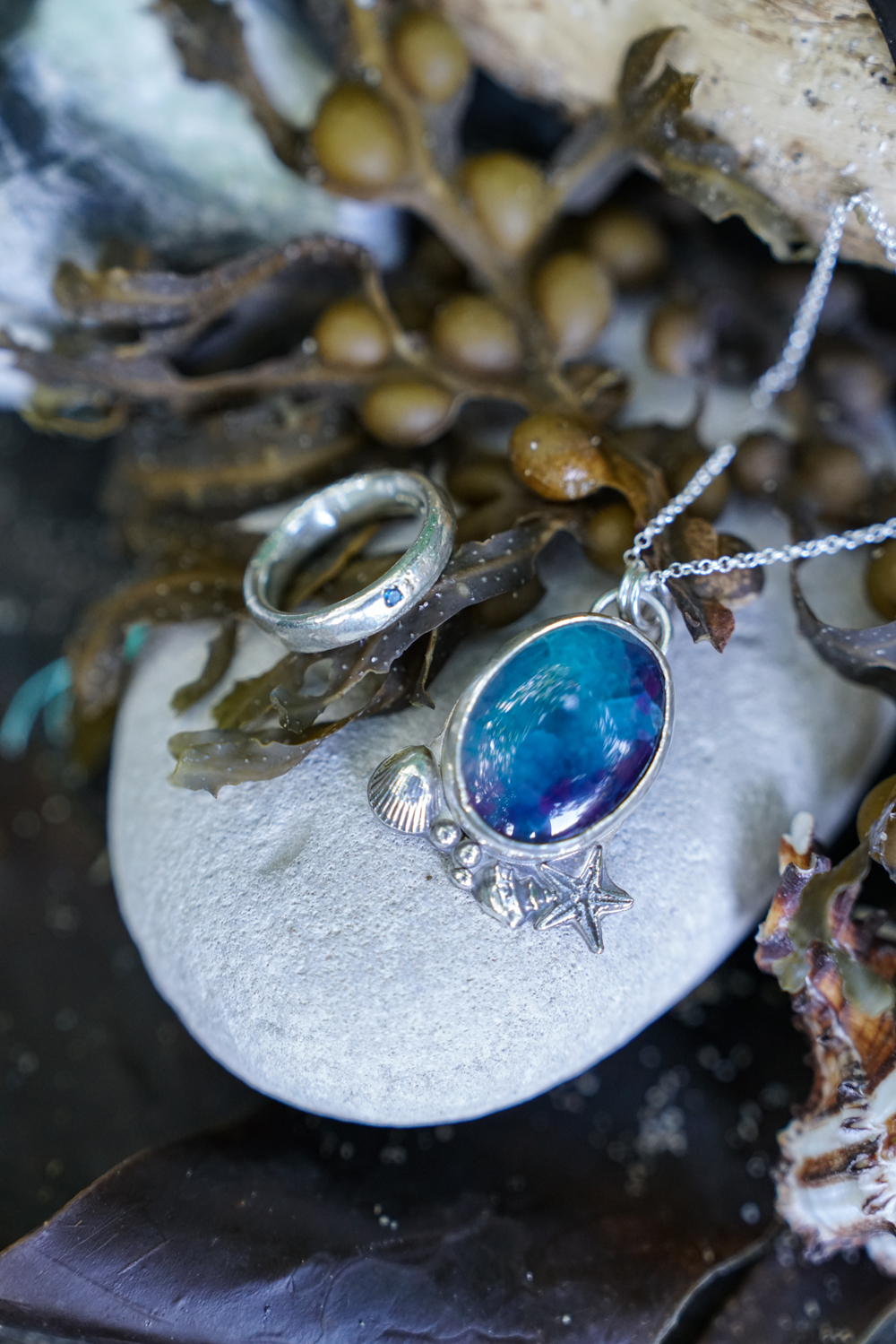 Her designs capture the essence of the sea in tactile, wearable forms—echoing pebbles, waves, and the soft shimmer of coastal light. Through her work, Tamasine aims to evoke memory, emotion, and a lasting sense of connection between maker, wearer, and landscape.